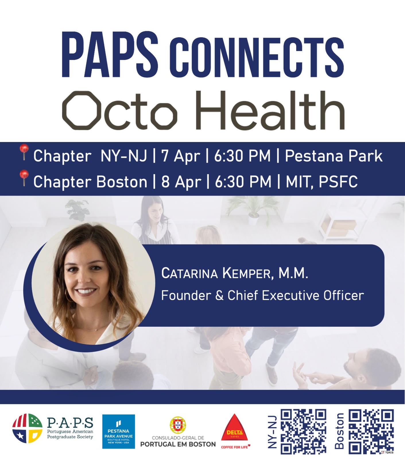 O evento em NY-NJ terá pasteis de nata generosamente patrocinados pela Octo Health e café oferecido pela Delta Cafés.