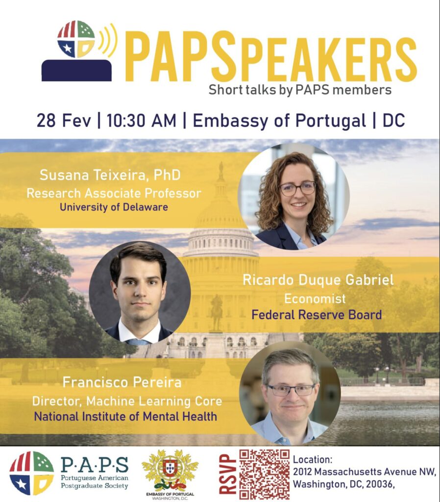 Chapter: DC/Maryland/Virginia ― 🇵🇹 Temos o prazer de vos convidar para mais uma edição do PAPS Speakers, que terá lugar na Embaixada de Portugal em Washington DC. Este evento reúne membros da comunidade PAPS…