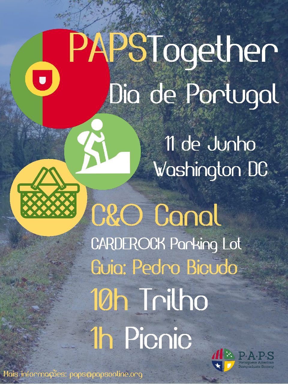 Saiba maisCaminhada e piquenique para comemorar o Dia de Portugal! Ao longo de Chesapeake and Ohio Canal (C&O Canal). Washington D.C.